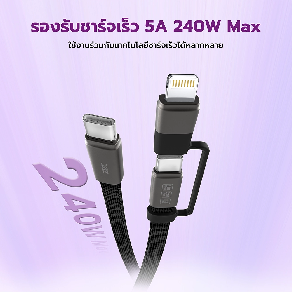 - รองรับชาร์จเร็ว 5A 240W ใข้งานกับเทคโนโลยีชาร์จเร็วได้หลากหลาย