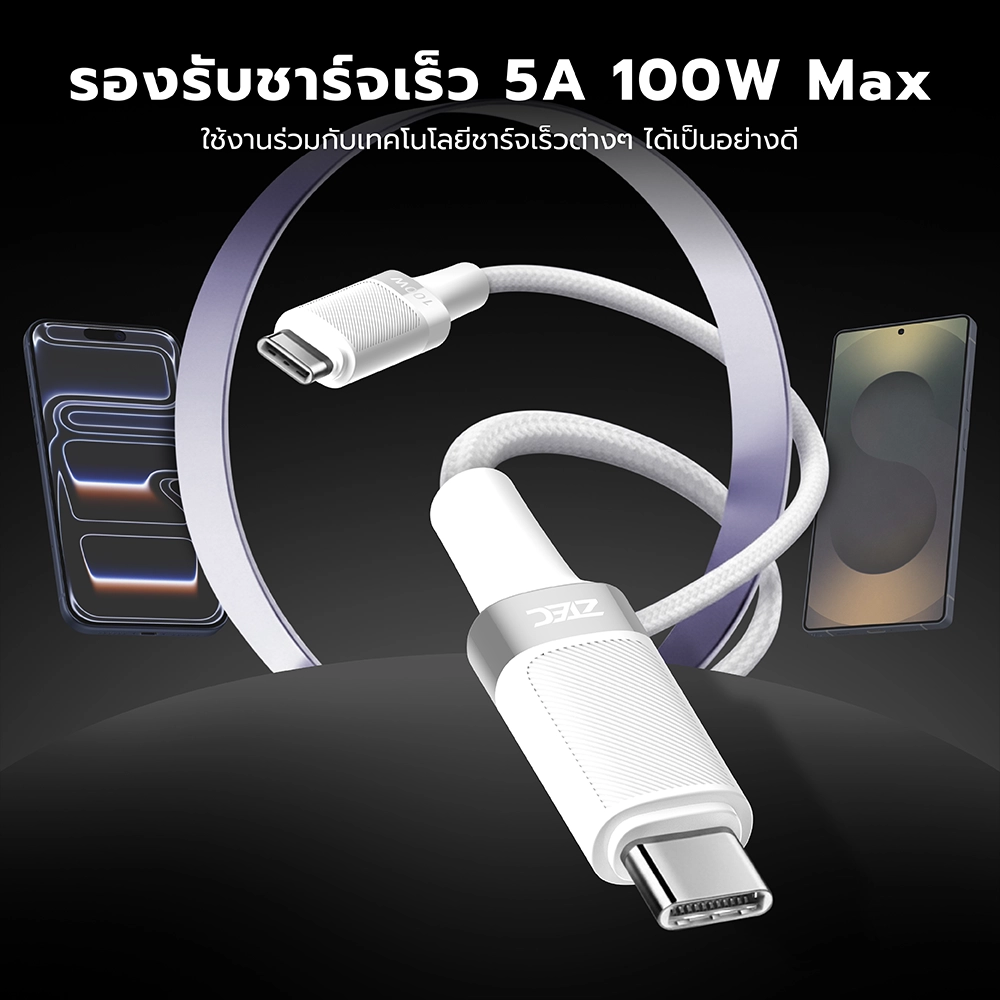 - รองรับกำลังไฟในการชาร์จเร็วสูงสุด 5A 100W Max