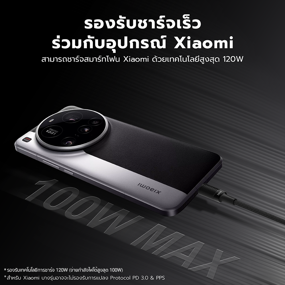 - รองรับเทคโนโลยี Xiaomi 120W (จ่ายกำลังไฟสูงสุด 100W Max)
